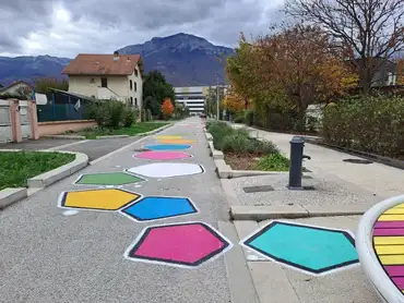 Sécuriser la rue Charles Tartari aux abords de l'école Saint-Joseph en réalisant un marquage au sol ludique et une signalétique peinte, première étape vers une Rue aux enfants.